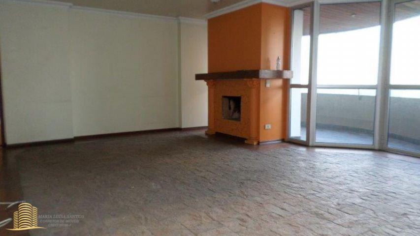 Living com 3 ambientes com lareira, terraço incorporado ao living e a um dos dormitórios, cozinha com sala de almoço incorporada, lavabo