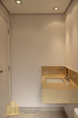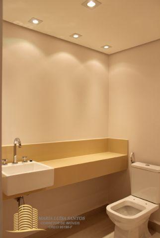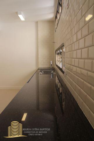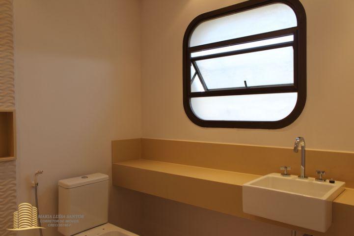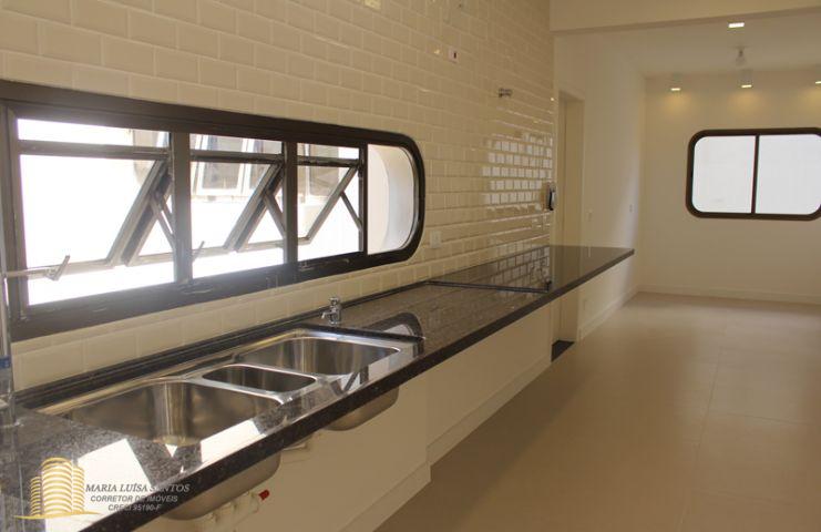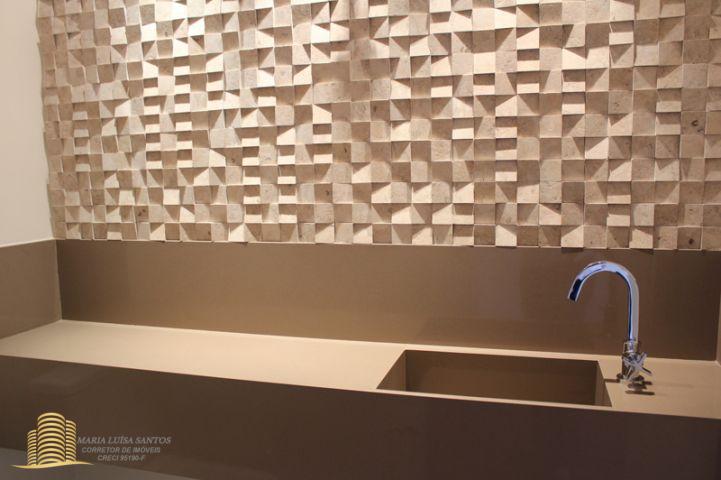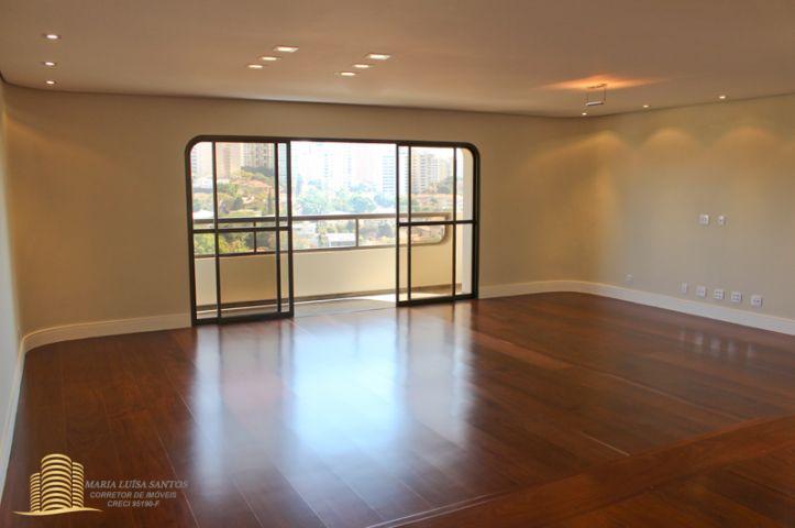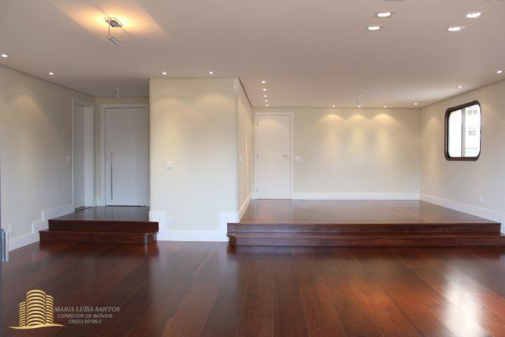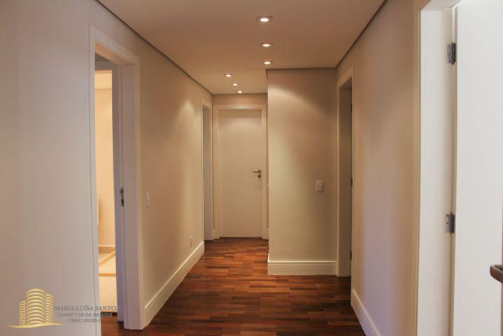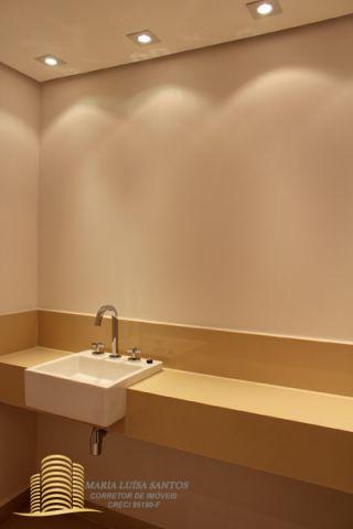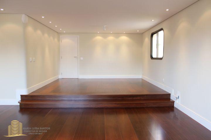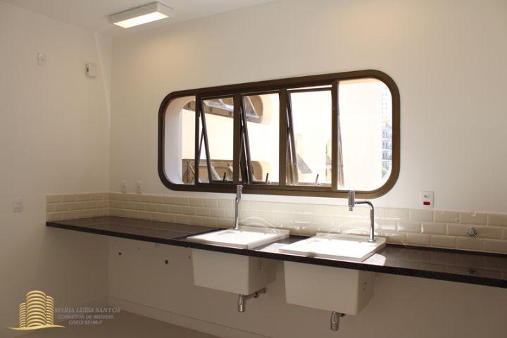 4 Suítes, 1 Lavabo, sala em 3 ambientes, varanda com vista para o infinito, cozinha com copa, 2 dormitórios de serviço, área de serviço com dois tanques, 1 banheiro de serviço, infra estrutura de ar condicionado para quartos e sala, 3 vagas de garagem (estacionam 4 carros médios), 1 apto por andar, hall social privativo